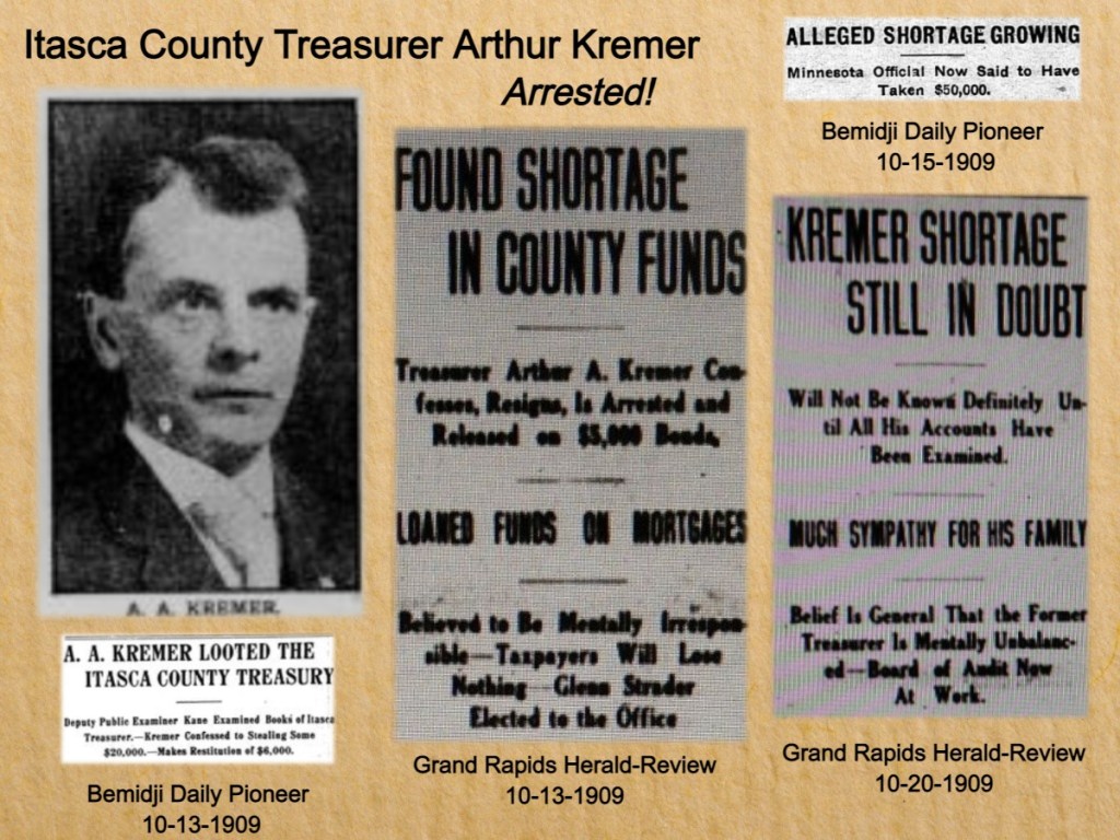 In 1911 a break at the Itasca County Jail was credited with the escapee having extra-long arms. “Late last Sunday night there came near being a wholesale jail delivery at the county bastille. One Beals, a prisoner indicated for arson by the grand jury evidently became tired of imposing on the sheriff’s hospitality, after his incarceration some seven months ago or made up his mind that he had ‘done time’ long enough to atone for his crime so he decided to leave, and he went and is probably still going.